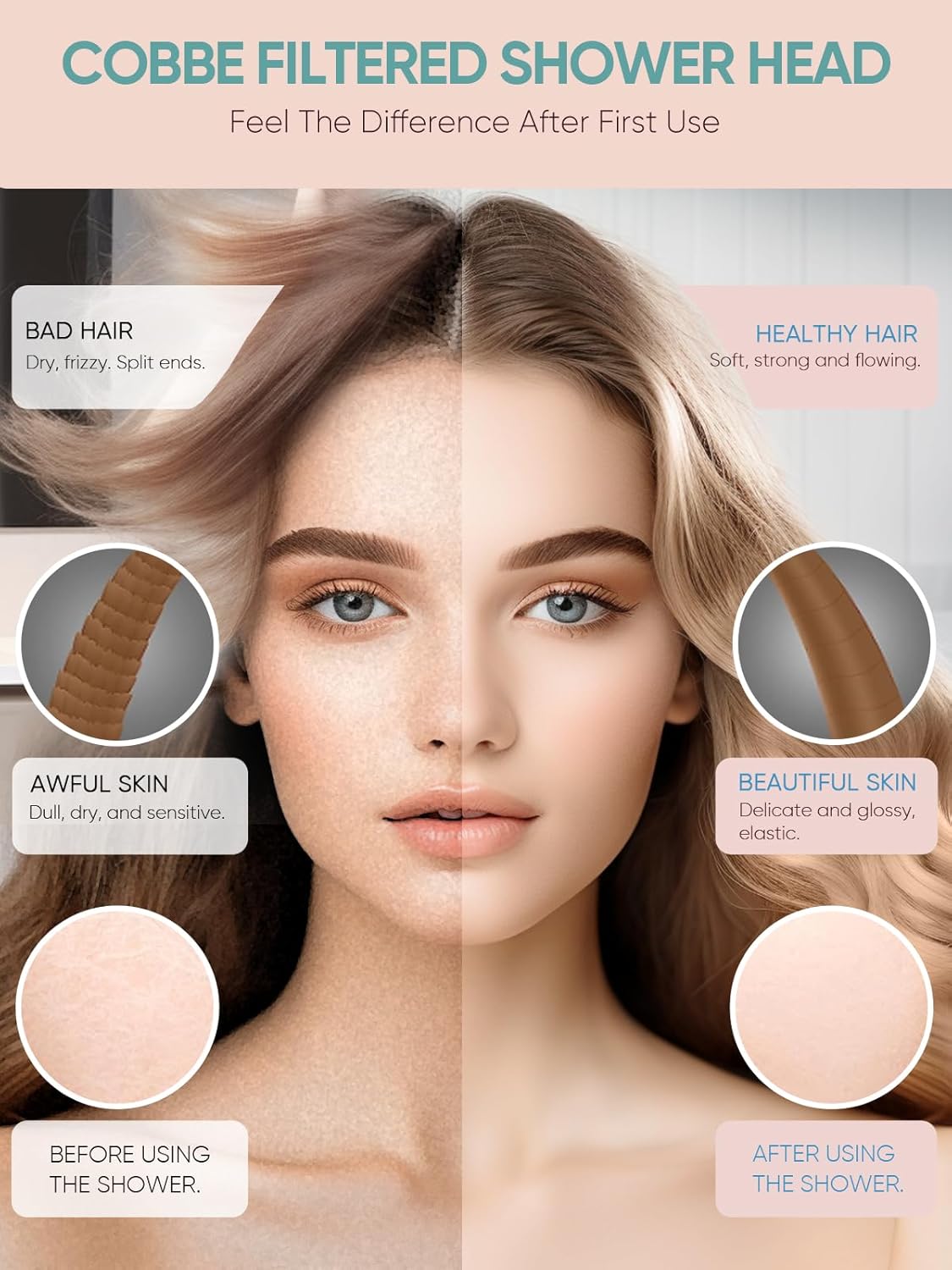 Cobbe – Experts in Shower Filtration Solutions: With over 18 years of expertise in bathroom filtration technology, Cobbe is one of the top-selling filtered showerheads on Amazon. Designed specifically to optimize water quality in the U.S., Cobbe features an advanced 20-stage filtration system that effectively removes impurities while maintaining strong water pressure.