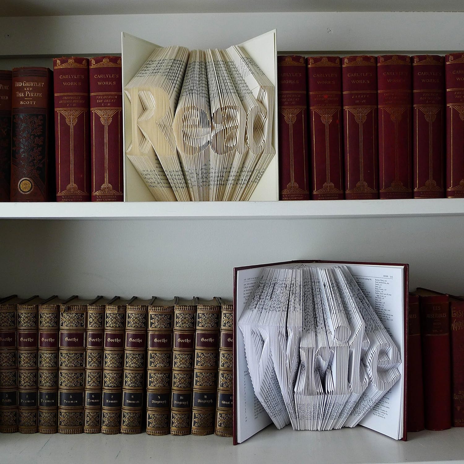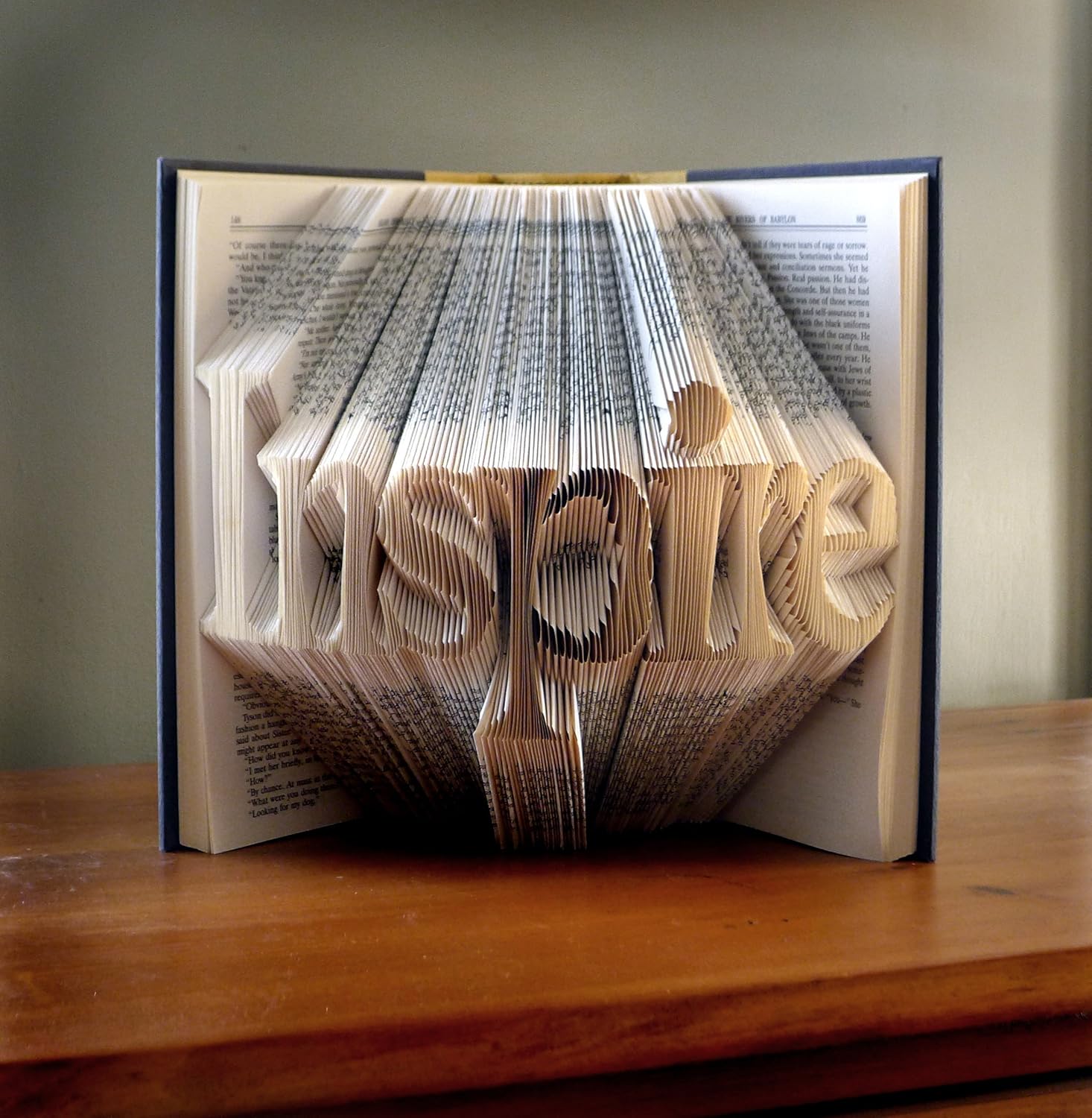 This unique custom folded book is made by carefully folding the individual pages of a book to spell any word of your choice.