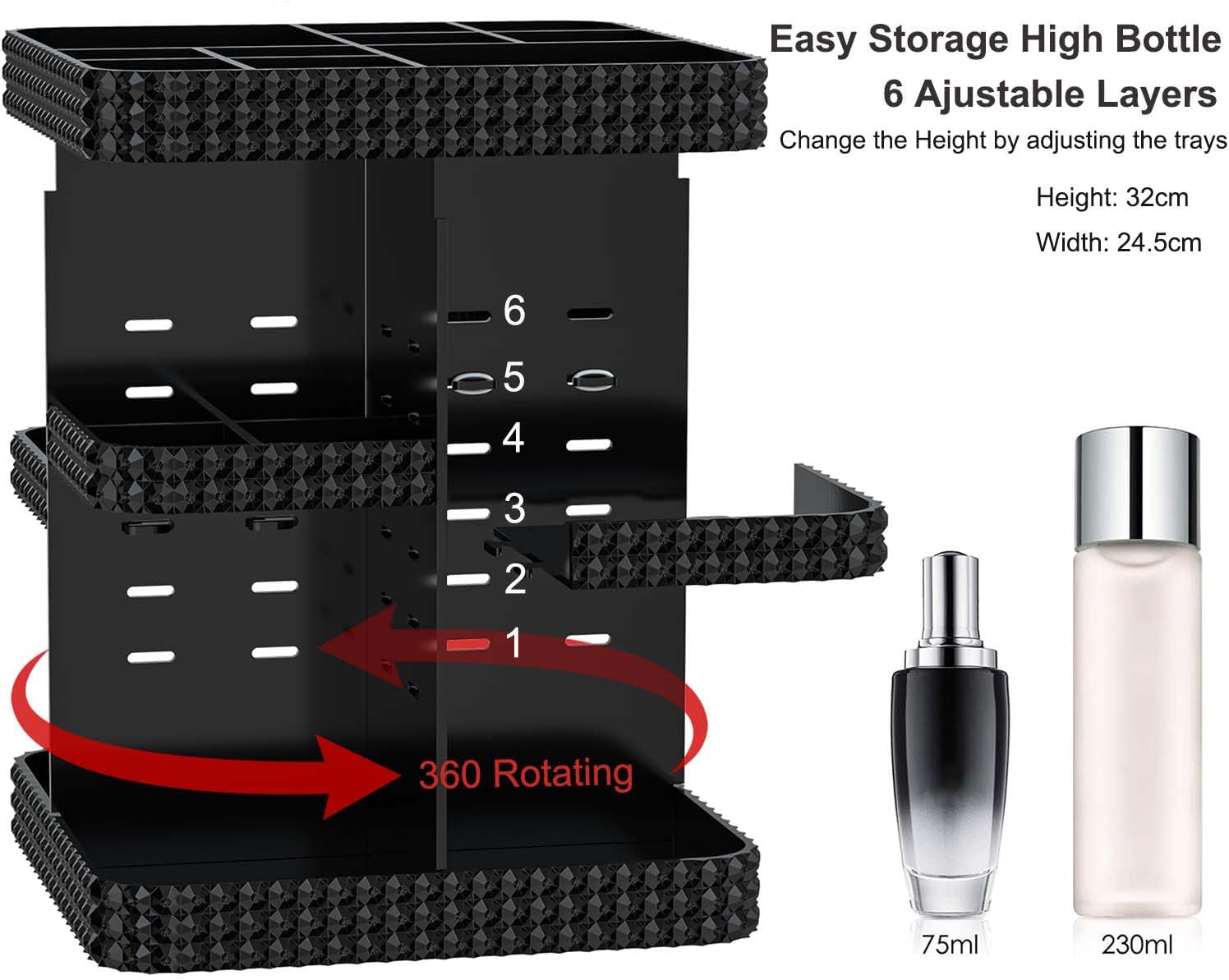 High Quality Present: Exquisite black makeup organizer is absolutely essential in women’s life, can be used as a make up organizer for vanity, perfume holder organizer, bathroom countertop organizer, kitchen spice organizer, etc. It is also a great souvenir for your mum on Mother’s Day, your other half on Valentine’s Day, your family on Christmas Day, your friends on New Year’s Day, or even your bestie on her birthday.