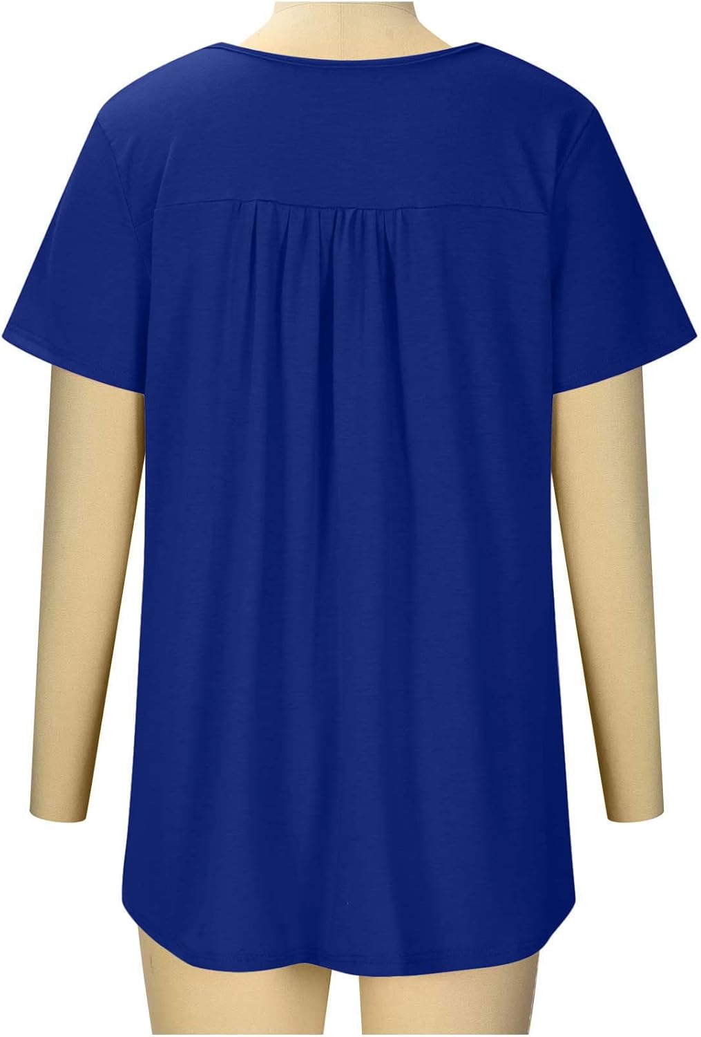 Vifucz Juniors Crew Neck T Shirts Tops Tee for Women Short Sleeve Loose Fit Long Pleated Basic Fall Summer Shirts 2024